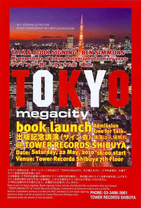 On Saturday, photographer Ben Simmons will be giving a talk at Tower Records in Shibuya to launch his new book “Tokyo Megacity.” A great opportunity to meet a fantastic photographer.