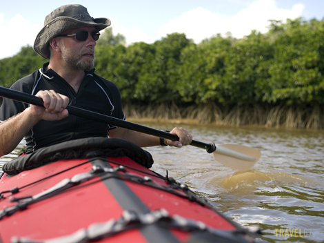 The camera I was using has some weather sealing but is not waterproof. I was standing thigh deep in the water next to the kayak for the second shot.