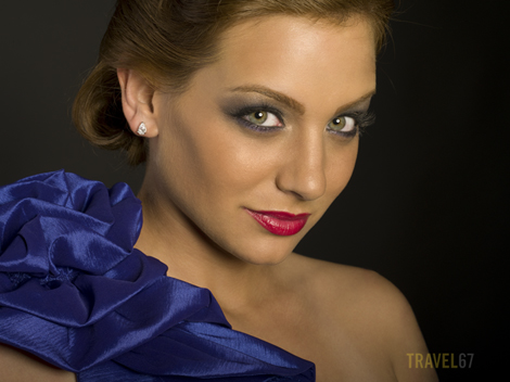 Lighting remained constant through the shoot. Makeup artist Kim Clay added a natural makeup look between shots 2 and 3, and then an evening makeup look between 3 and 4. Another key difference is that the first two shots were taken with the 645 55mm lens (approx 40 mm on a 35 full frame camera) and the last two shots were taken with the 67 105mm lens (approx 85mm on a 35mm full frame camera). The longer lens gives more pleasing proportions to the face, which is why lenses around 85mm are often described as portrait lenses.