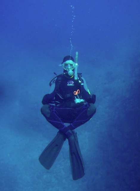 I don’t take a camera with me when diving. There’s the hassle and expense of housings, combined with the fact that I like being able to simply relax while underwater. I let Hiroshi do the shooting and I just mug for the pictures.