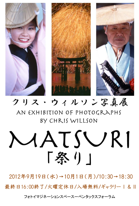 Here’s the first draft of the DM or promotional postcard for the Matsuri exhibition at the Pentax Forum in September. The next step is selecting and printing images. Most of the images I’m choosing from are in my Matsuri set on Flickr, please check them out and let me know if there are particular favorites you’d like to see in the show.