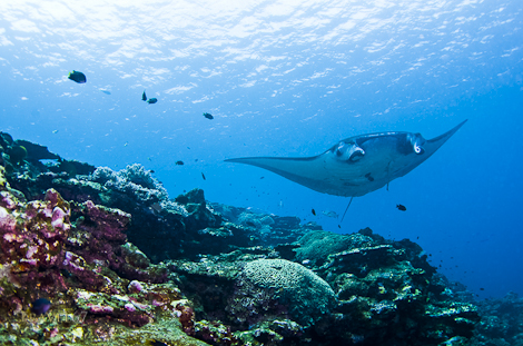 There are several rules for manta diving. Don’t touch, don’t chase, don’t exhale bubbles into their gills, and stay with your guide. The general strategy for divers is to wait next to one of the coral outcrops and watch the mantas as they make their rounds. În some cases the mantas actually glided right over the top of me, reminiscent of the opening scene of Star Wars. This is actually the best time to identify individuals, as each manta has a unique pattern of blotches on it’s underside.