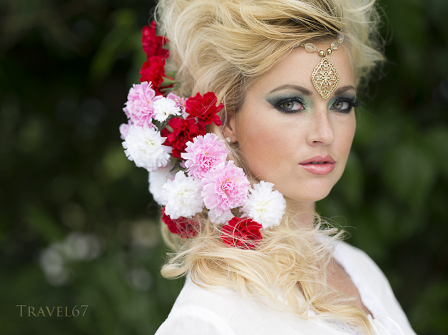 Another image for Leia Heider’s model portfolio. We shot this look first in the studio, but I decided it would work better outdoors, so we stepped out into the garden and used some green foliage as a background.