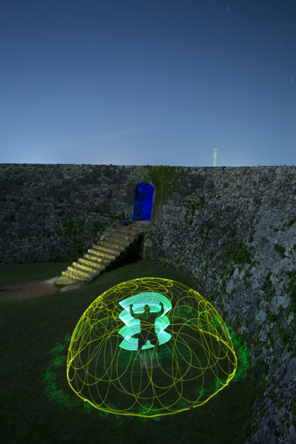 Three pics from the third night of light painting. We were creating our images as a team, so credit for each image must go to all members of the group, rather than just the person with the finger on the shutter. Thank you to Jamie, Kevin, Michael, Jonathan and Gary for coming to the advanced workshop, and of course to Trevor for illuminating us with his knowledge. We’ll see you back in Okinawa in Oct 2014!