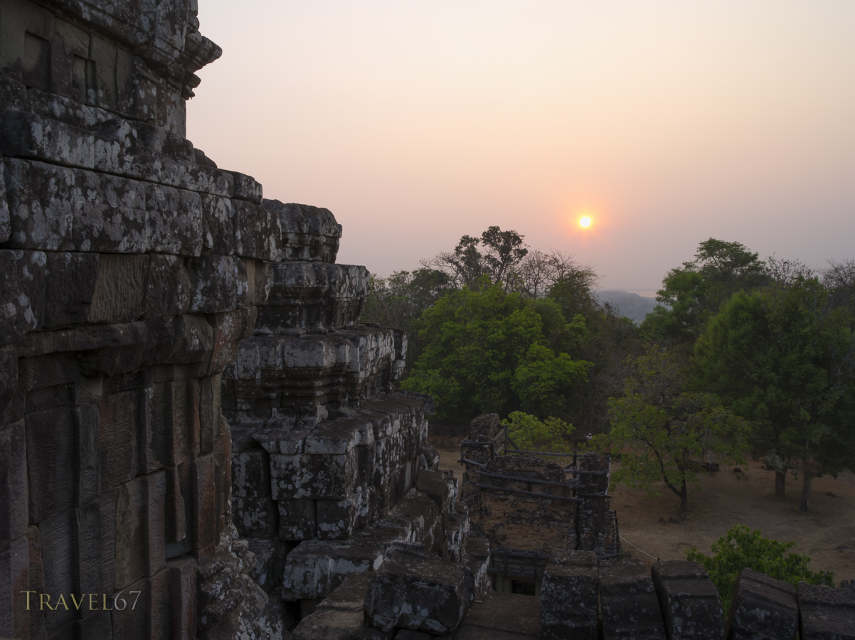 Angkor Wat is the most popular place in Siem Reap to see the sunrise. For sunset the title is held by Phnom Bakheng. The temple is on the top of a small hill overlooking the surrounding forest and the Western Baray.
