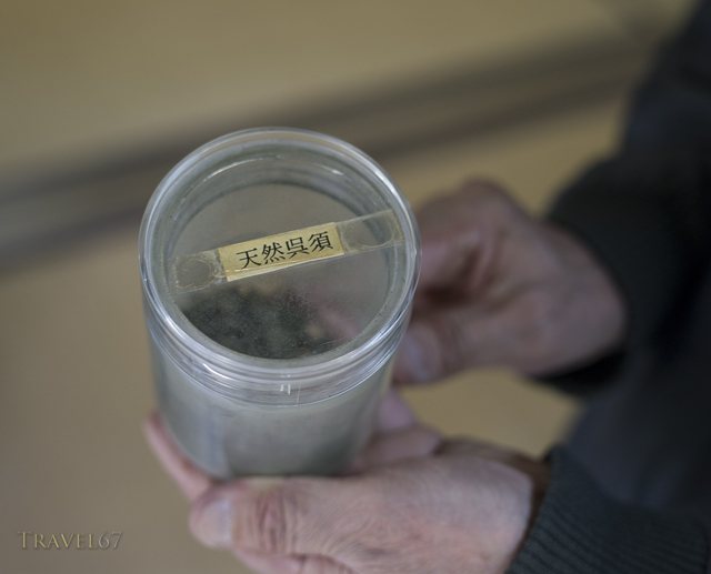 Tennengosu (cobalt stones) held by Hitachi Tsuji 常陸 辻 15th generation ceramic master, Arita, Saga Prefecture, Japan.