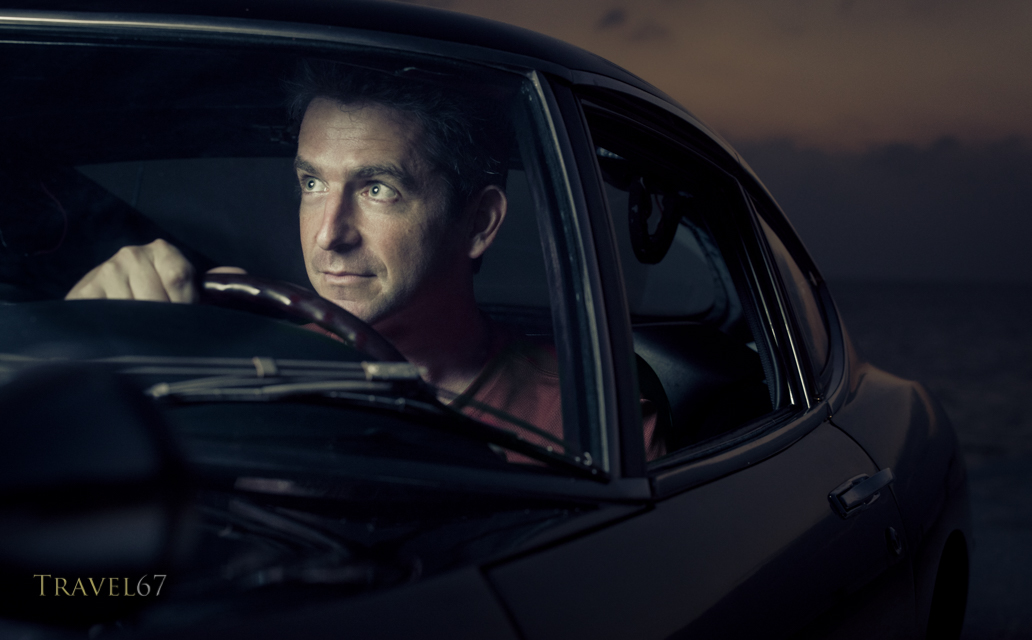It was fun to get into the driver’s seat for a moment while I was checking the lighting. It’s not often you get to sit behind the wheel of a million dollar car. In both images I used the Profoto B1 strobe and a medium softbox to add some light to the car (above) and subject (below).