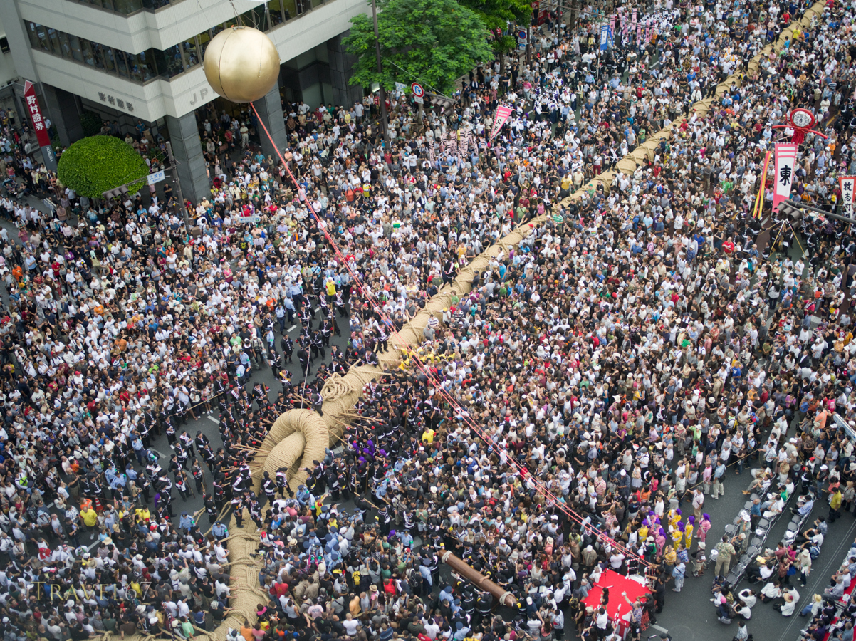 Last weekend was the world’s largest tug of war. It is held each year on route 58 in Naha City, Okinawa. First the two halves of the rope are joined together with a giant wooden pin. Kings of the west side and east side are then carried to the center of the rope.