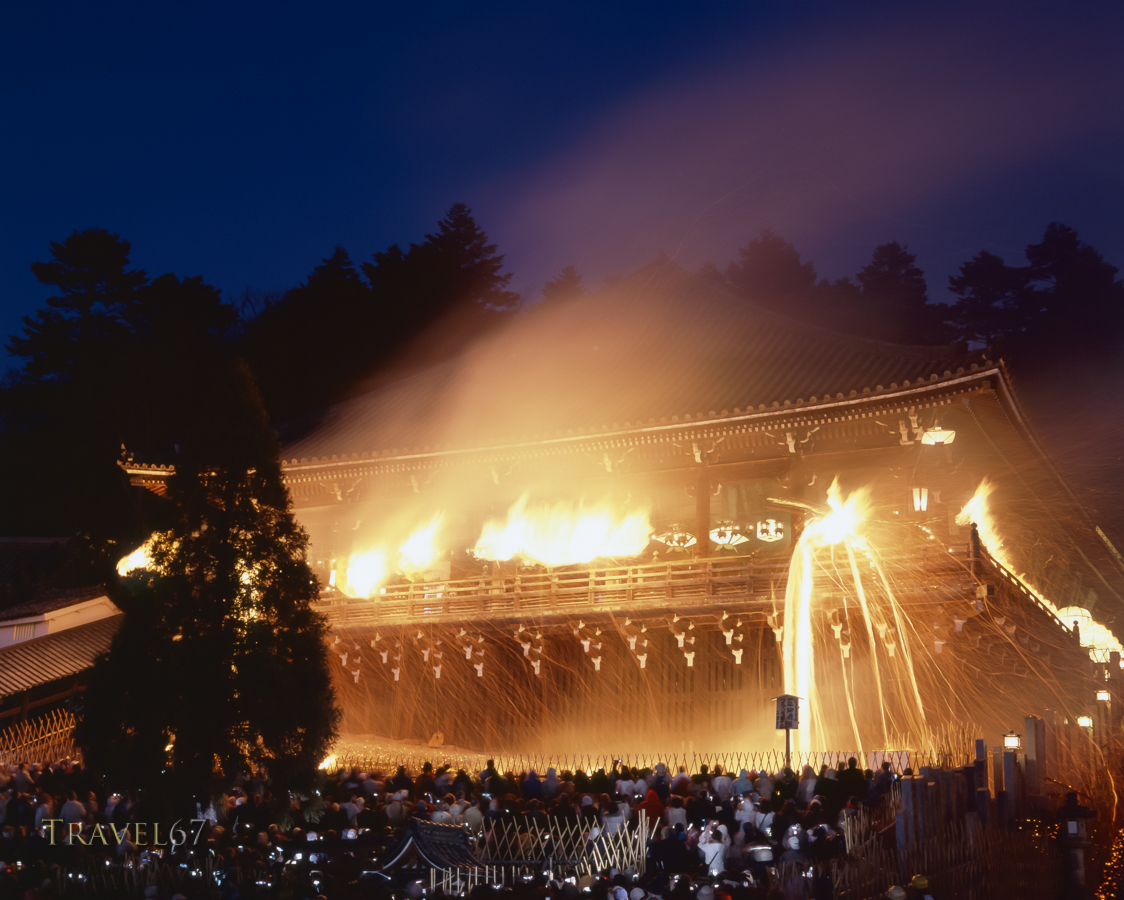 A short walk east from Todai-ji Temple are the Nigatsu-do and Sangatsu-do Halls. Nigatsu-do is famous for the view from it’s balcony at dusk, and the Omizutori Festival. The festival is held at midnight in March and involves monks parading around the temple balcony with fiery torches. The glowing embers rain down on the spectators below, purifying them.