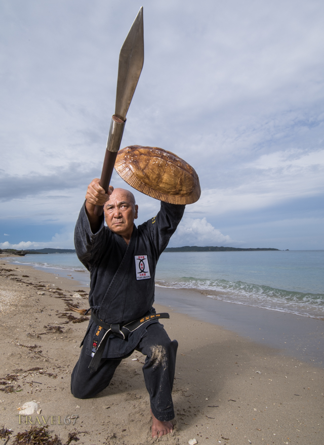 Kensho Tokumura, Hanshi 9th-dan Ryukyu Dento Kobujutsu Hozon Budo Kyokai photographed for my Beyond the Dojo project on the beach in Heshikiya, Katsuren, Okinawa.