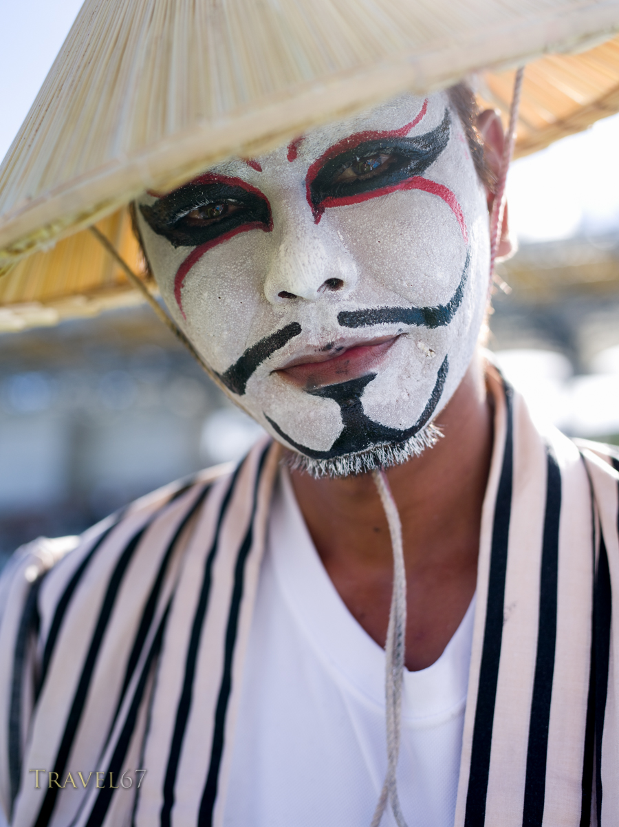 July 13, 2016 All Okinawa Eisa Festival, Okinawa City, Okinawa A chondara is like an Okinawan clown that takes part in Eisa, encouraging both the dancers and the crowd.