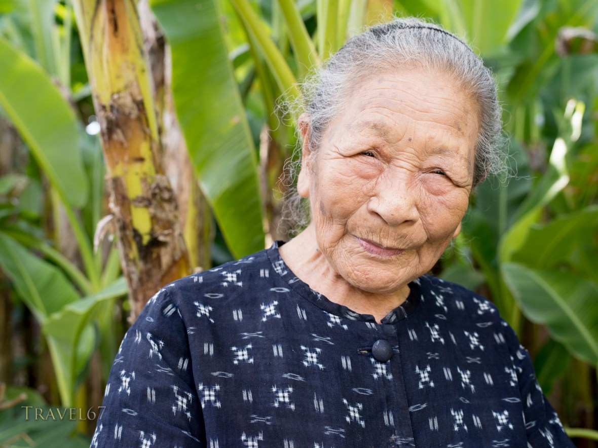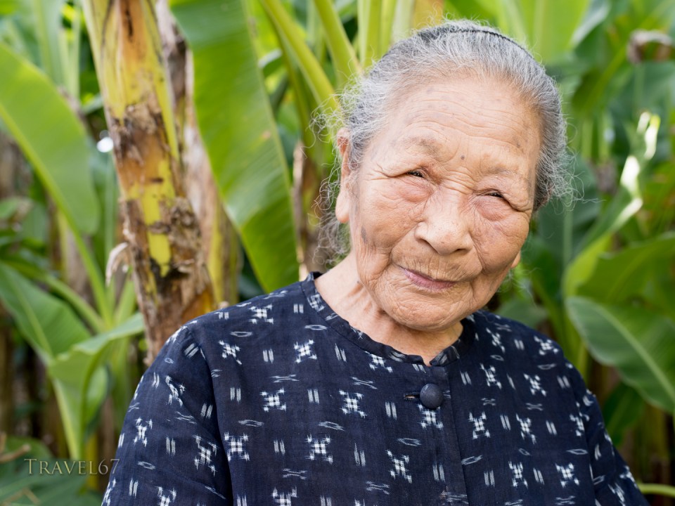 January 2, 2017 645z1252se900 Toshiko Taira age 96 Japanese Living National Treasure, Ogimi Village Bashofu Hall, Kijoka, Ogimi, Okinawa