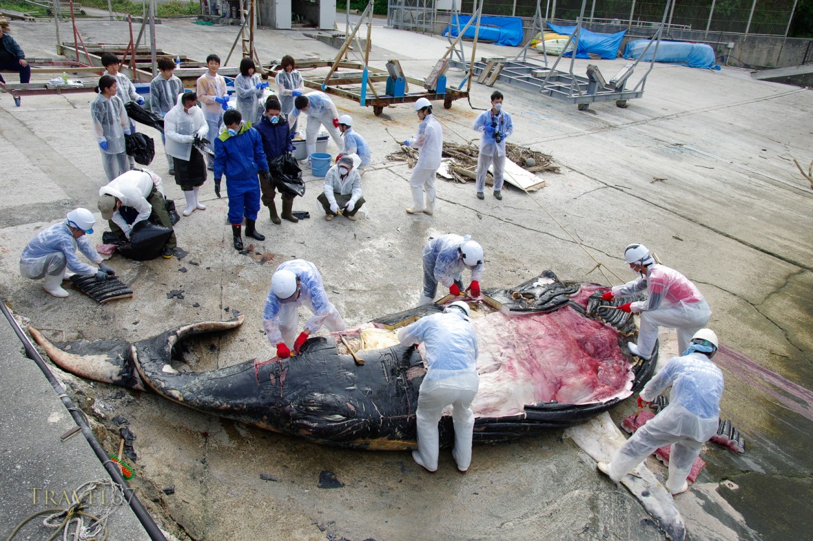 January 1, 2017 _k3_3164se900 Dissection by Okinawa Churashima Research Center of young humpback whale that beached near Kadena, Okinawa, Japan. 19/02/2016