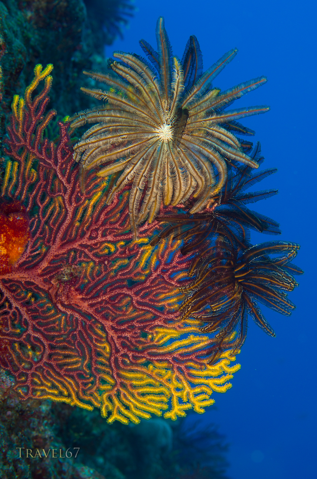 Identifying fish is often a challenge especially when some of them such as the bullethead parrotfish change their shape, color, and even sex over the course of their lives. Trying to identify corals is even trickier, but hopefully over the years I’ll be able to better differentiate between the various sponges, sea fans, soft corals, stony corals and anemones. The featured photo is I believe a Periclimenes psamathe ( seafan shrimp) on a Muricella sp. gogorian sea fan.