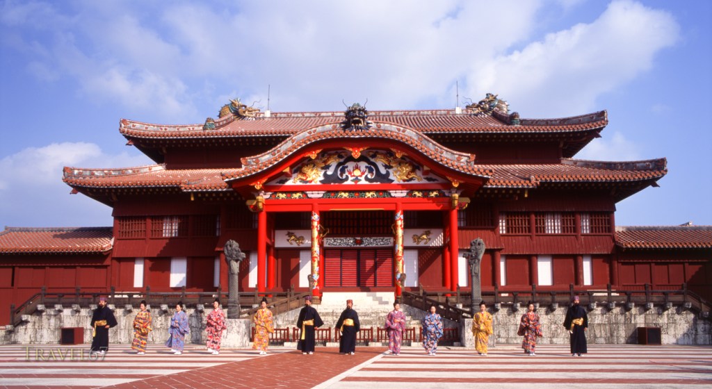 The highlight of October’s Shuri Castle Festival is a lavish recreation of the 1800 Sappou Coronation, which formalized the Chinese Emperor’s recognition of the Ryukyu King. This was particularly important for the islanders as it gave them both protection and the right to trade with China.Stone Dragon Head Pillar at Shuri Castle, Okinawa, japanShuri Castle, Okinawa, JapanOn each of the first three days of the year, a New Year Ceremony is held in the courtyard followed by performances of Ryukyu Dance. The most popular of these classical dances is Yotsudake where the women dress in bright bingata costumes of yellow and red, and don the hanagasa head-dress.Traditional Okinawan kimonos in the courtyard A local woman and man are chosen to play the parts of the Ryukyu King and Queen at the ceremony.Shuri Castle New Year Ceremony Stone Shisa at Shuri Castle OkinawaShuri Castle, Okinawa, japanOctober 25th, Karate Day 2013 at Shuri Castle. Meitetsu Yagi, Zenpo Shimabukuro, Koei Teruya, Minoru HigaSeikichi Iha Sensei’s students assemble in August 2019Shuri Castle August 2019New Year Festival