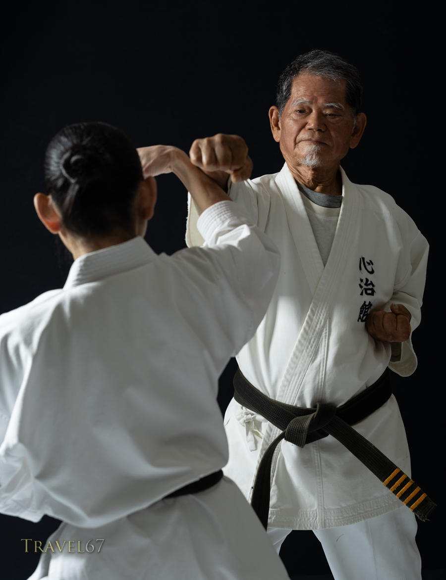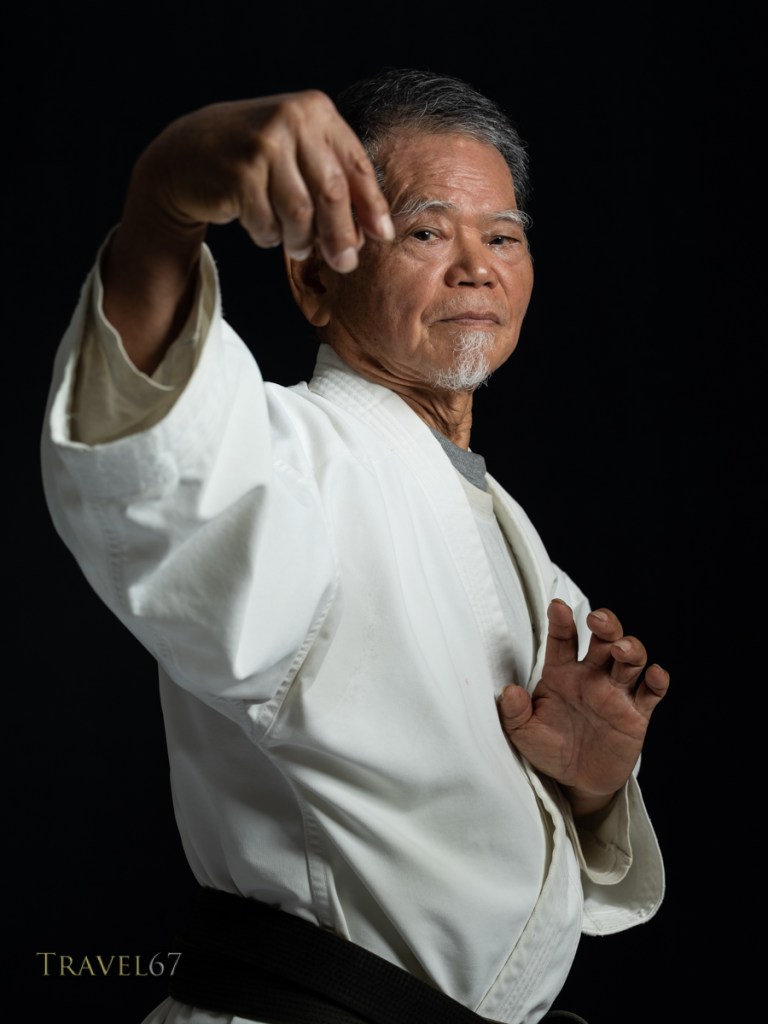 On December 19th, 2020, James and I visited the dojo of Zenshu Toyama, in Awase, Okinawa. Toyama Sensei is 10th-dan, Goju-ryu Karate, and one of the style’s most senior practitioners. We photographed Toyama Sensei in October 2013, but on this day we returned to interview him for Episode 12 of the Sensei: Masters of Okinawan Karate documentary series. As it had been 7 years since our previous visit, we also shot some new portraits.
