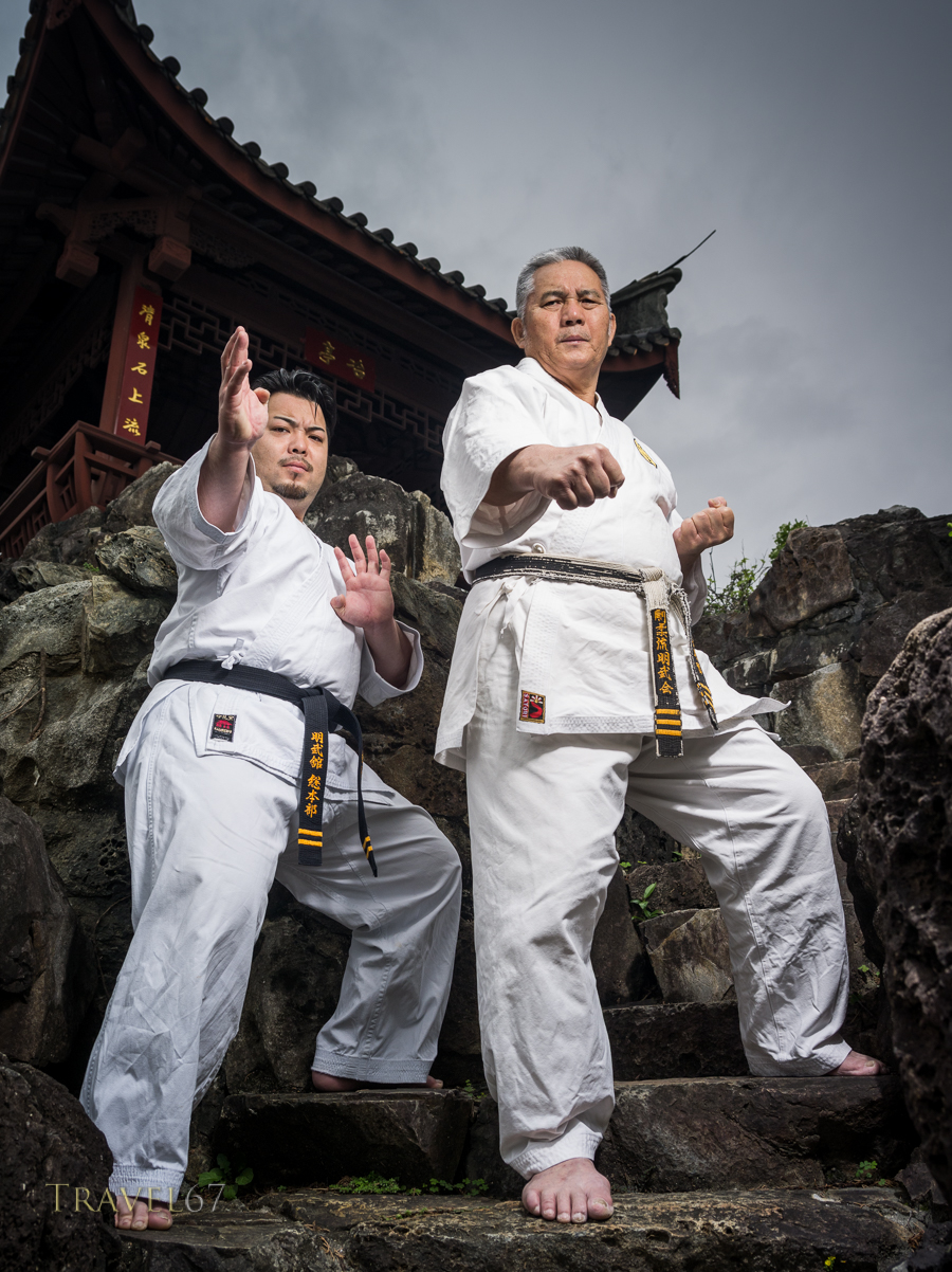 March 30, 2016 2_6451028SE900 Meitetsu Yagi and son Ippei Yagi of Meibukan Karate at Fukushu En, Naha, Okinawa, Japan