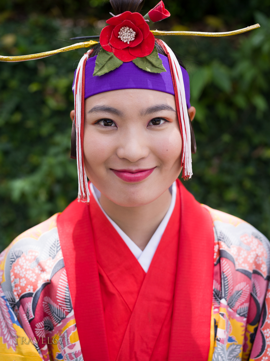 March 29, 2016 2_IGP0112SE900 Okinawan woman dressed in traditional Bingata Kimono at Shuri Castle, Okinawa, Japan