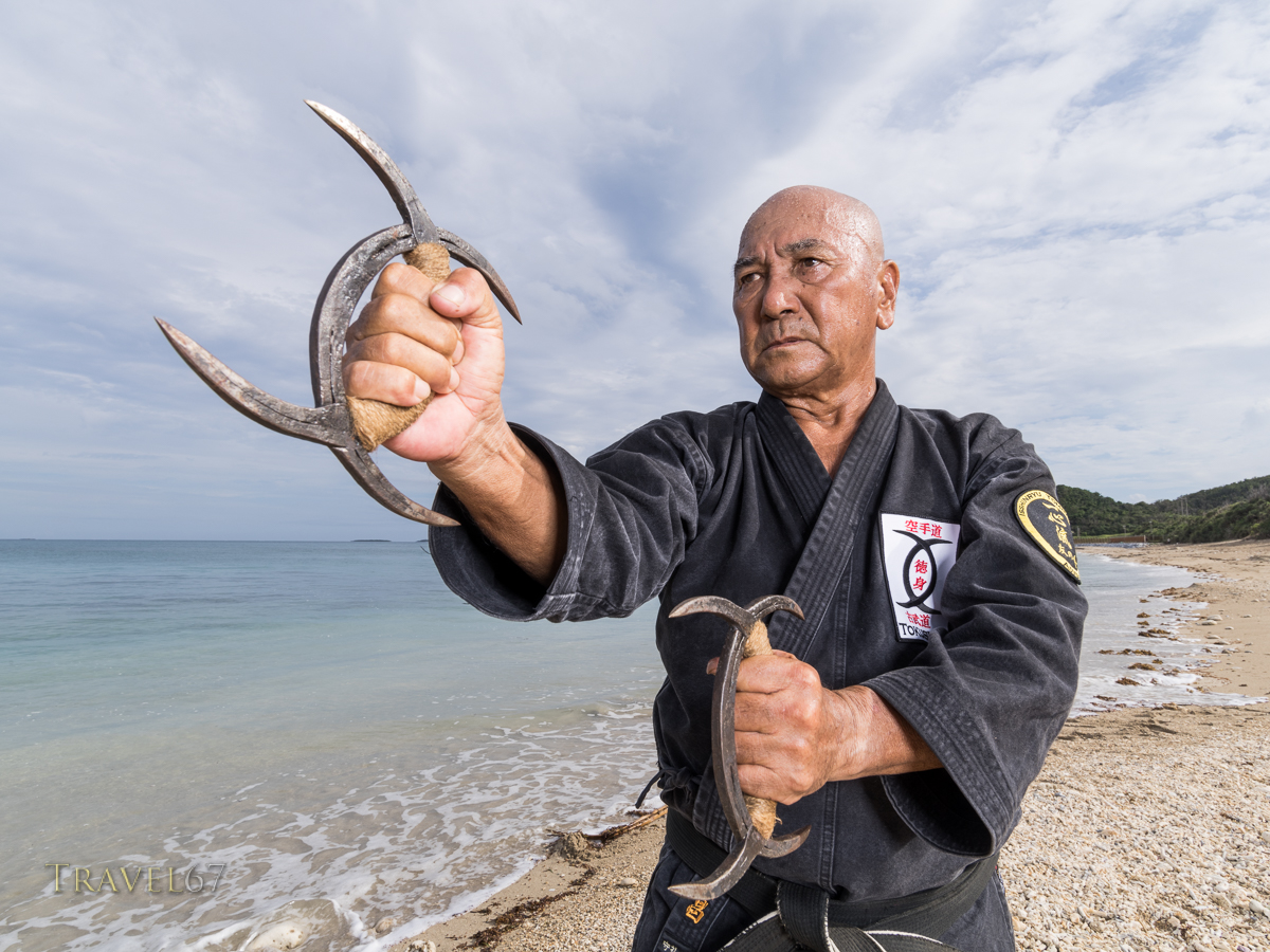 March 30, 2016 9645Z6293SE900 Kensho Tokumura, Hanshi 9th-dan Ryukyu Dento Kobujutsu Hozon Budo Kyokai Training on Heshikiya Beach, Katsuren, Okinawa. 德村 賢昌 範士九段 琉球伝統古武術保存武道協会