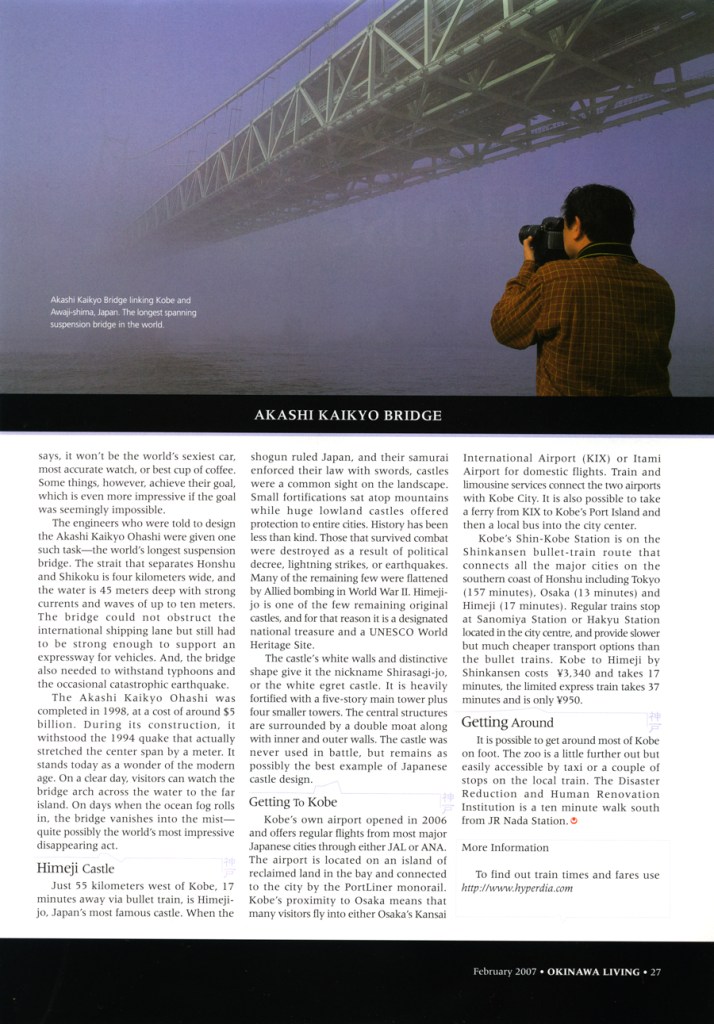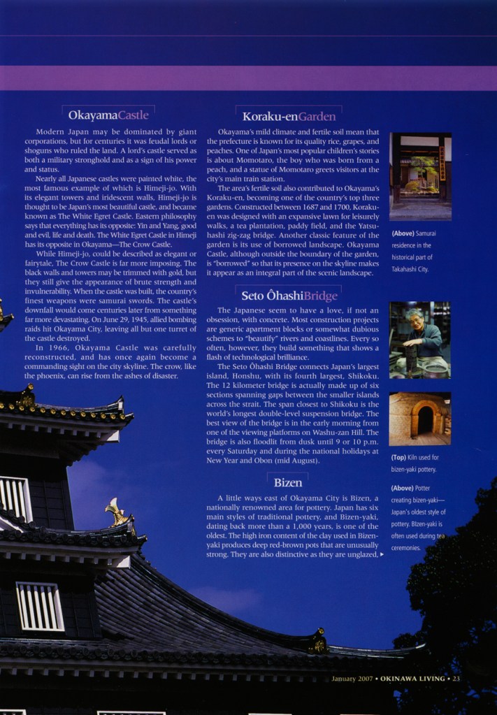 I discovered your blog site today when I was frantically searching for news on Okinawa after the tsunami. I was born there and have lots of family there. My mother is full Okinawan making me half. I went back to visit in 2002 and couldn’t believe how “at home” I felt. All my relatives made me feel like I had lived there my whole life. I am hoping to return this fall with the Uchinanchu festival. I will keep tabs on your blog to see your photos and read your experiences. Please feel free to contact me anytime.