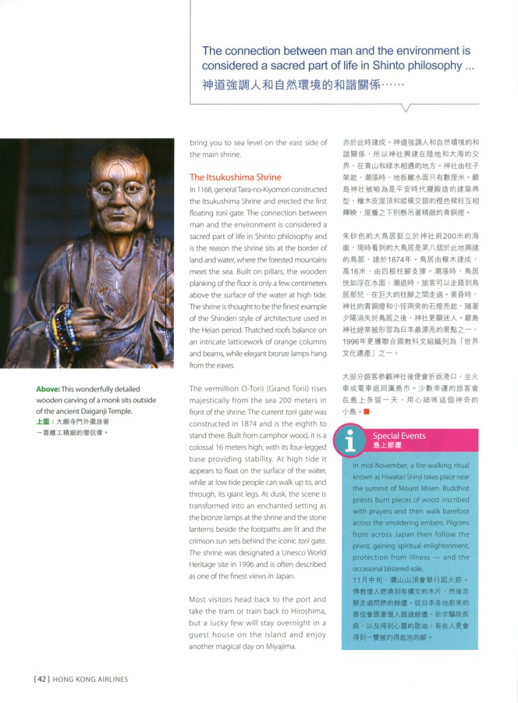 彼の撮るイメージは、定期的に新聞、雑誌、ガイドブックなどに使用されています。
