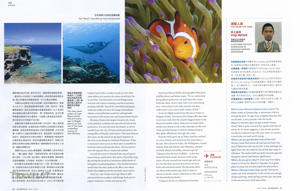 Chris Willson is a British ex-pat photographer, videographer, and travel writer based in Okinawa. He specializes in documenting Japanese festivals, martial arts, and life on Okinawa both on land and underwater. His images often appear in newspapers, magazines and guidebooks.