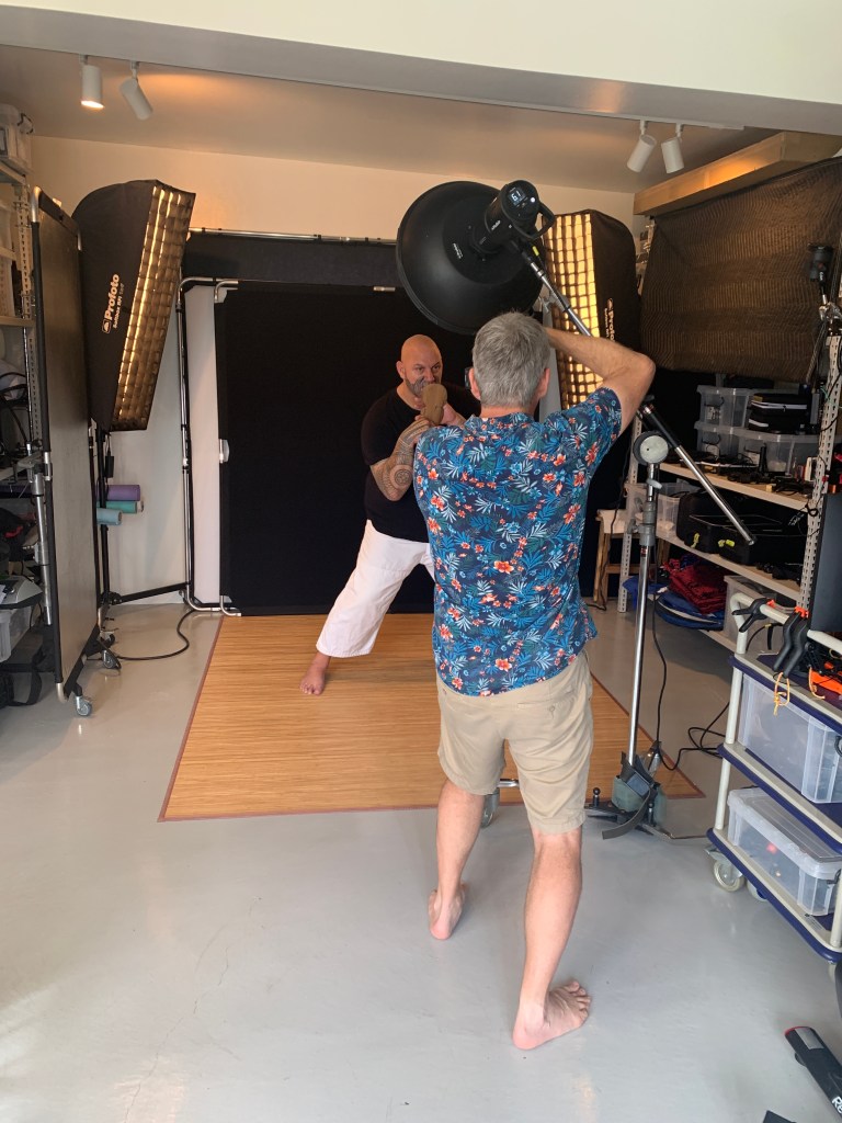 Portraits of Tuari, a master of Māori martial arts. He is holding a patu, which was made by his father-in-law. It was a real honour and a delight to photograph Tuari, and I am so pleased he could make his way up to my studio in Motobu. My goal is to visit him in New Zealand, as Tuari has offered me the opportunity to document Māori martial arts on location in beautiful Aotearoa.