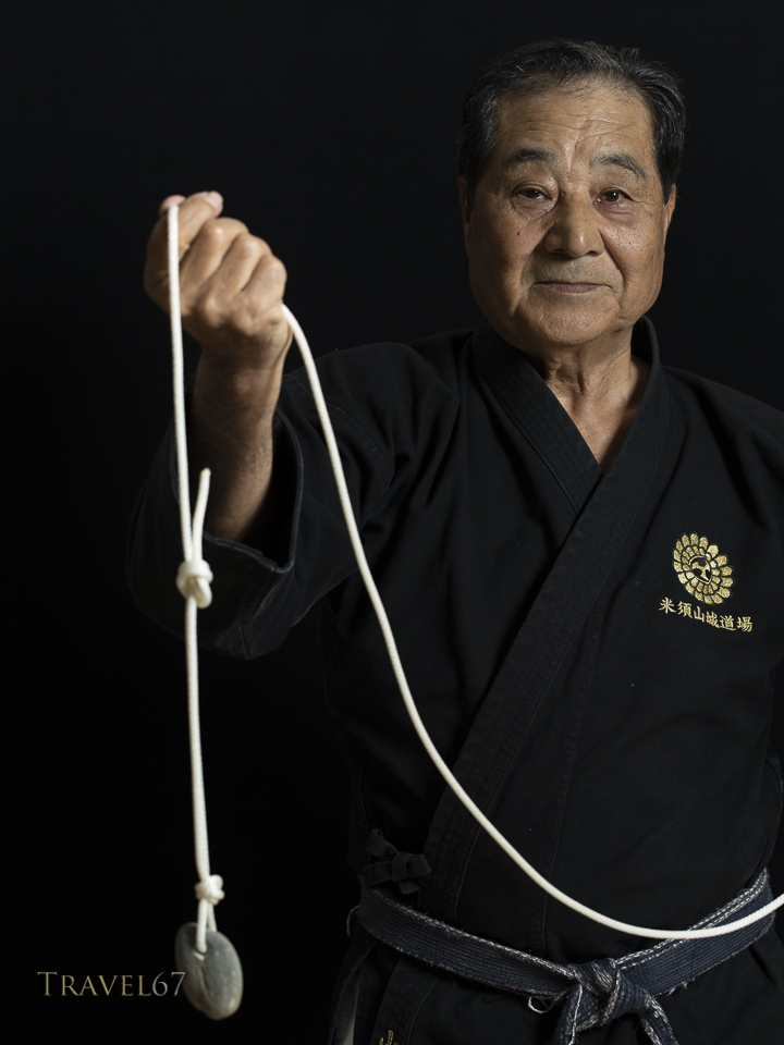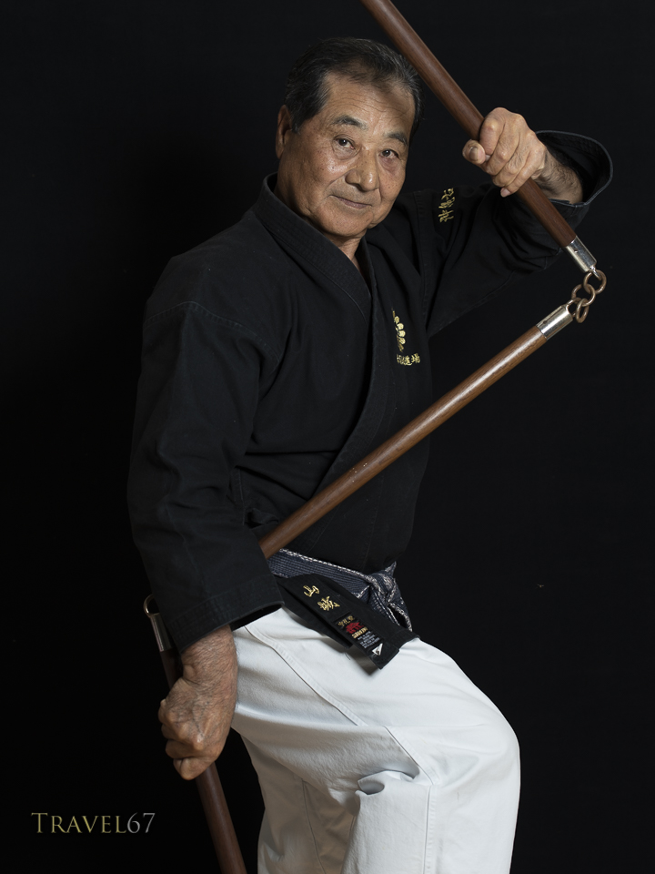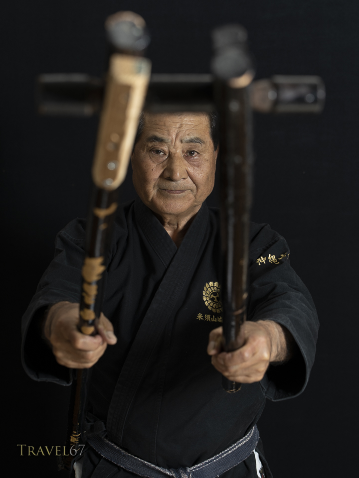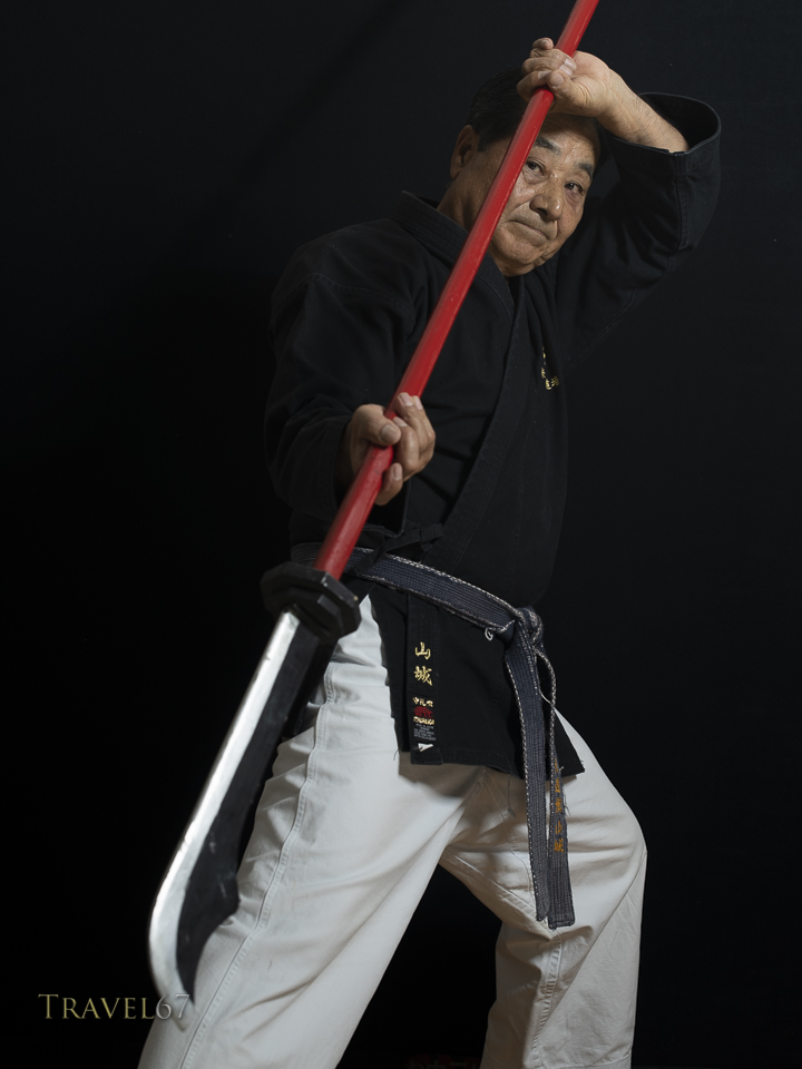 Fusei Kise 10th dan Matsumura Orthodox Shorin-Ryu Karate and Kobudo 83 years old. Photographed at his dojo in Okinawa City on April 13th 2019. Learn more about the Karate Masters Portrait Project at https://travel67.com/the-karate-masters-portrait-project/