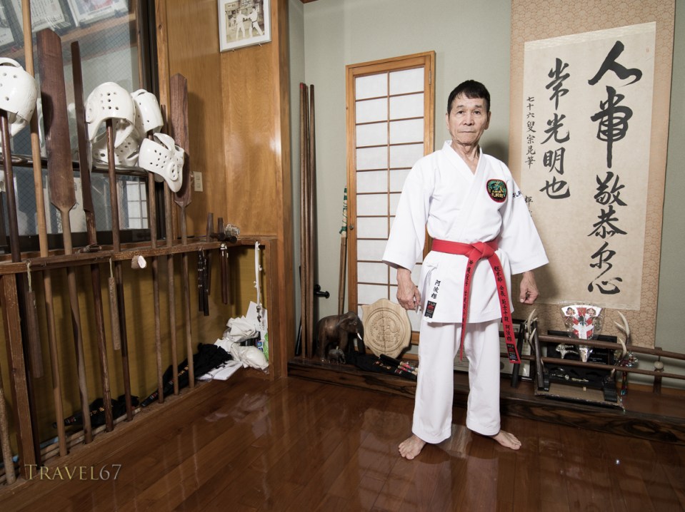 March 29, 2016 Karate Masters Portrait Project Naonobu Ahagon, Hanshi 10th Dan, Okinawa Karate & Kobudo Shorinryu at his dojo in Naha City, Okinawa.