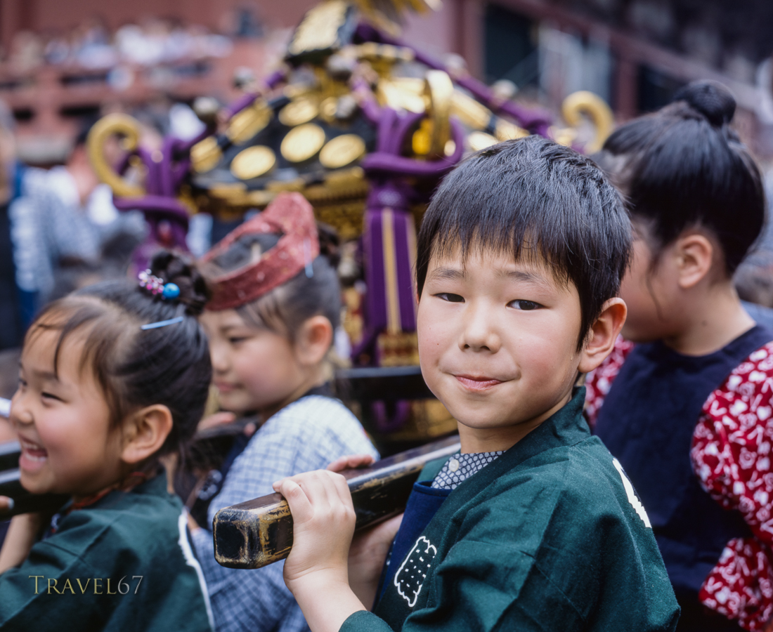 March 29, 2016 Sanja Matsuri, Asakusa Shrine, Tokyo Sanja Matsuri, Asakusa, Tokyo. Small mikoshi for small children. The whole family takes part in the celebration.