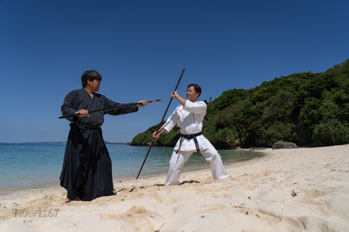 7th Dan Motoburyu Moidi (Black) and Tamashiro Toshihiko 5th Dan Shogenryu (Shorinryu) Karate (White dogi) Photographed for the Karate Masters Portrait Project in Motobu, Okinawa 2025 /03/ 23 Chris Willson Photography http://www.TRAVEL67.com